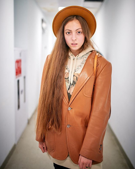 14-летняя Маша опубликовала яркое фото на своей странице в Инстаграм. На нем она позирует в модном жакете и головном уборе коричневых тонов с распущенными длинными волосами.