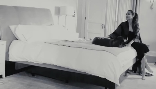 У дома несколько этажей. На первом расположена большая кухня и также гостиная. Наверху находится спальня Джоли и ванная комната. Также в кадр попали и питомцы Анджелины: гигантская ящерица, кролик и собака.