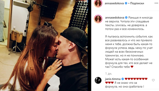 Певица опубликовала на своей странице в Инстаграм романтичное фото с Янисом Тимма.
