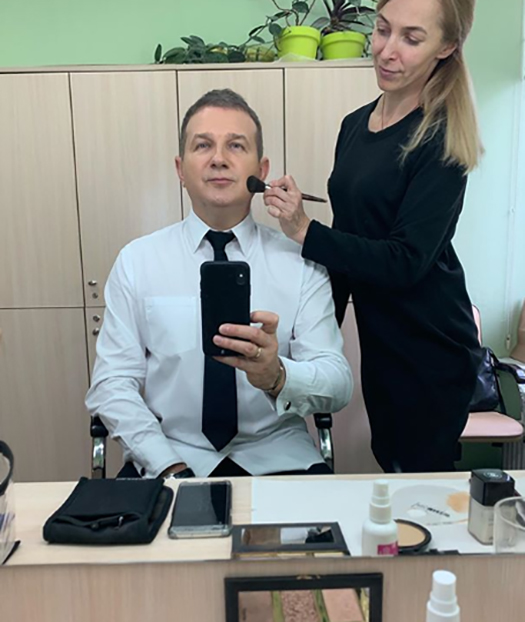 Украинский телеведущий и актёр, заслуженный артист Украины Юрий Горбунов показал своим подписчикам в Инстаграм, как ему наносят грим перед съемками, пишет Newformat.info.