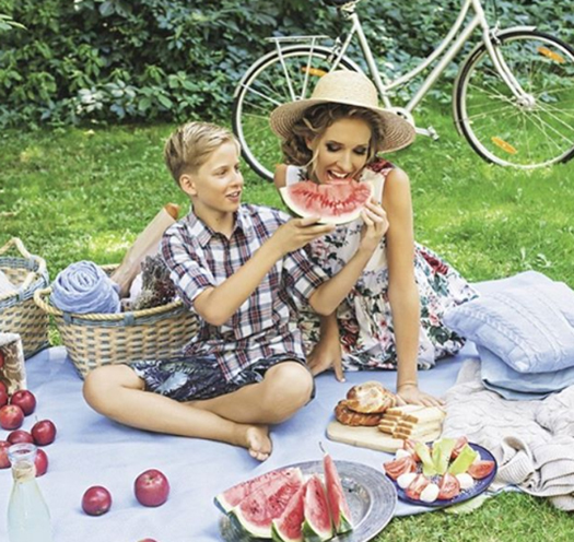 Катя Осадчая показала архивный снимок, на котором она вместе с сыном ест сочный арбуз.