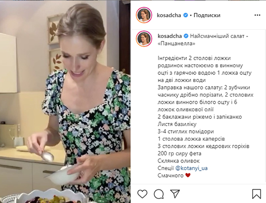 Украинская журналистка и телеведущая Катя Осадчая опубликовала в сети Инстаграм рецепт салата «Панцанелла», чем вызвала неоднозначную реакцию у поклонников. Некоторые из них считают, что такие лакомства могут позволить себе только богатые люди, и далеко не все могут позволить себе такие лакомства, особенно в это трудное для страны время, пишет Newformat.info.