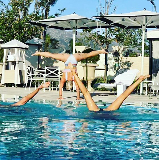 “Иногда мне и моим друзьям нравится делать вид, что мы синхронные пловцы. Я просто предпочитаю делать это вне бассейна”, – написала она.