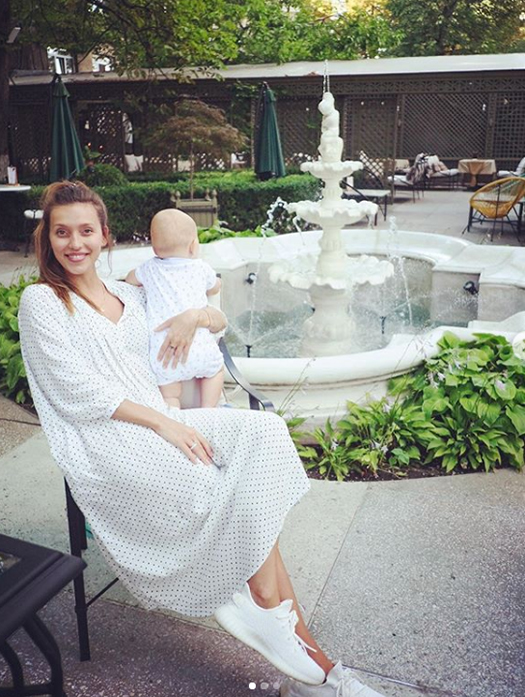 “За последние 9 месяцев я поняла , что материнство – это про меня. Мне нравится изучать маленького человека, я поглощаю литературу о воспитании также быстро, как китовая акула планктон. Я не теряю возможности покопаться в своём детстве и детстве”, – призналась она на своей страничке в Инстаграм.