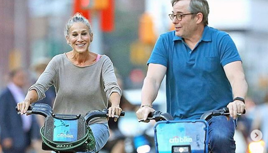 Сару Джессику Паркер папарацци успели сфотографировать в Нью-Йорке во время велосипедной прогулки с супругом.