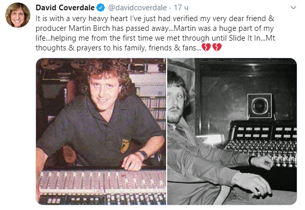 «С огромной грустью я только что узнал, что скончался мой дорогой друг и продюсер Мартин Берч. Мартин был огромной частью моей жизни», — написал он.