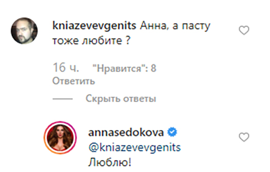 Поклонники отреагировали на пост и поинтересовались, ест ли она пасту, и тут же получили ответ от звезды: