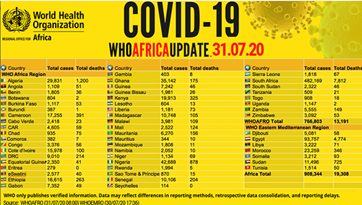 Число выявленных случаев коронавирусной инфекции COVID-19 в Африке превысило 900 тыс.