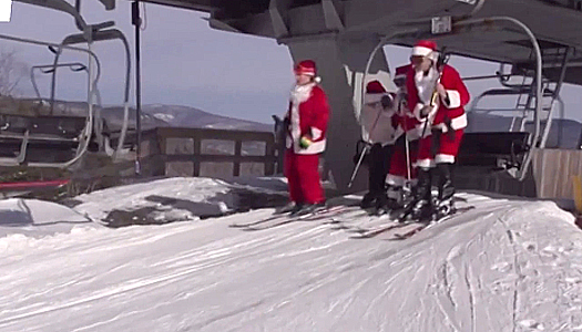 Бело-красные колпаки заполнили все местные подъемники. Затем Санты самых разных возрастов проехали по заснеженной трассе.