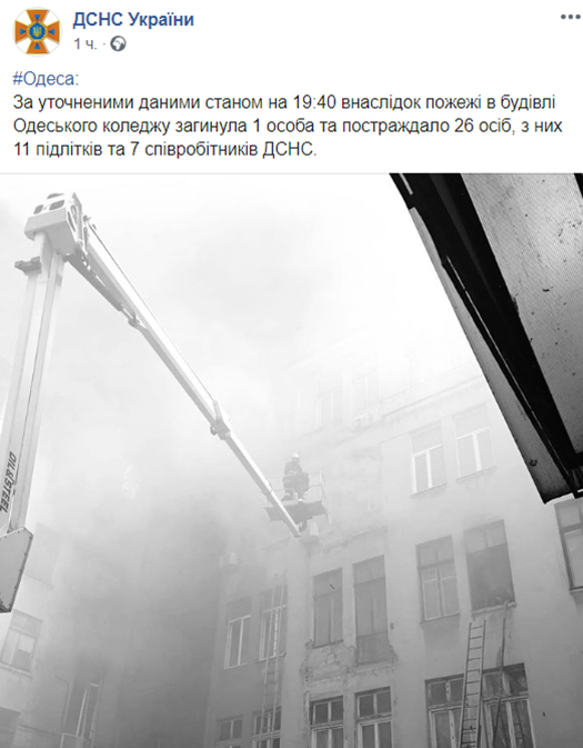 Стало известно, что число пострадавших при пожаре в колледже экономики, права и гостинично-ресторанного бизнеса в Одессе возросло до 26.
