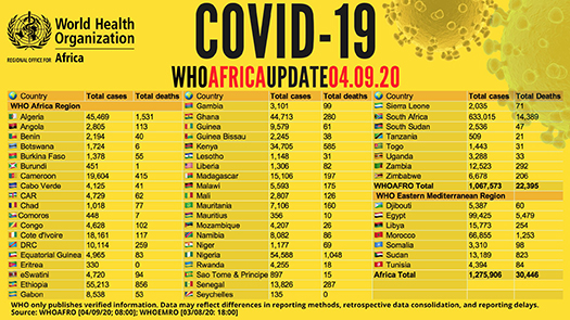 Представительство Всемирной организации здравоохранения (ВОЗ) в Африке сообщило, что число выявленных случаев коронавирусной инфекции COVID-19 в регионе достигло 1 275 906.