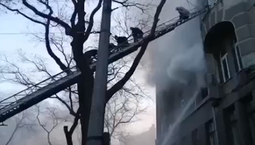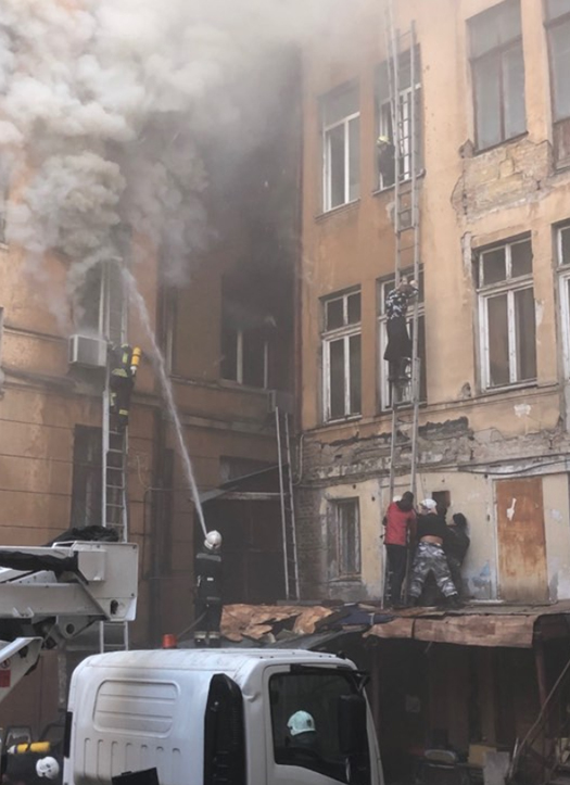 Пожарные ликвидируют пожар в Одесском колледже экономики, права и гостинично-ресторанного бизнеса.