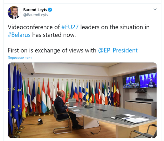 «Видеоконференция лидеров ЕС по Беларуси началась», — написал он.