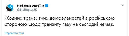 НАК «Нафтогаз України» повідомляє, що жодних домовленостей щодо транзиту російського газу територією України після 2019 року у переговорах з “Газпромом” не досягнуто. Між сторонами тривають переговори як на експертному рівні, так і у тристоронньому форматі за участі представників Єврокомісії.