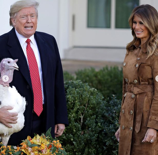 Сегодня в США отмечают День благодарения. По традиции 73-летний президент страны Дональд Трамп и его 49-летняя супруга Мелания провели ежегодную церемонию помилования индейки, которая прошла в Розовом саду Белого дома.