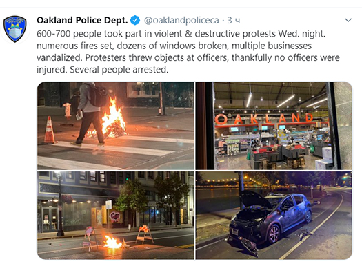 Об этом сообщила полиция Окленда в Twitter. Правоохранители задержали нескольких человек.