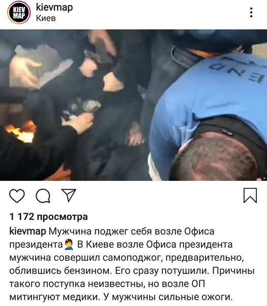 Возле Офиса президента в Киеве мужчина совершил самоподжег. Об этом сообщили в соцсети.