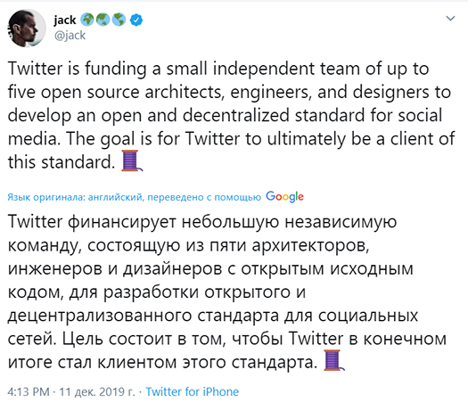 Он утверждает, что новая соцсеть станет децентрализованной, и будет иметь открытый исходный код, что позволит пользователям создавать серверы для общения по указанным правилам. Для создания соцсети уже финансируется независимую команда, состоящая из пяти архитекторов, инженеров и дизайнеров, пишет gazeta.ru.
