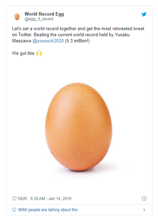 Один из популярных твитов с рекордным числом просмотров – яйцо: