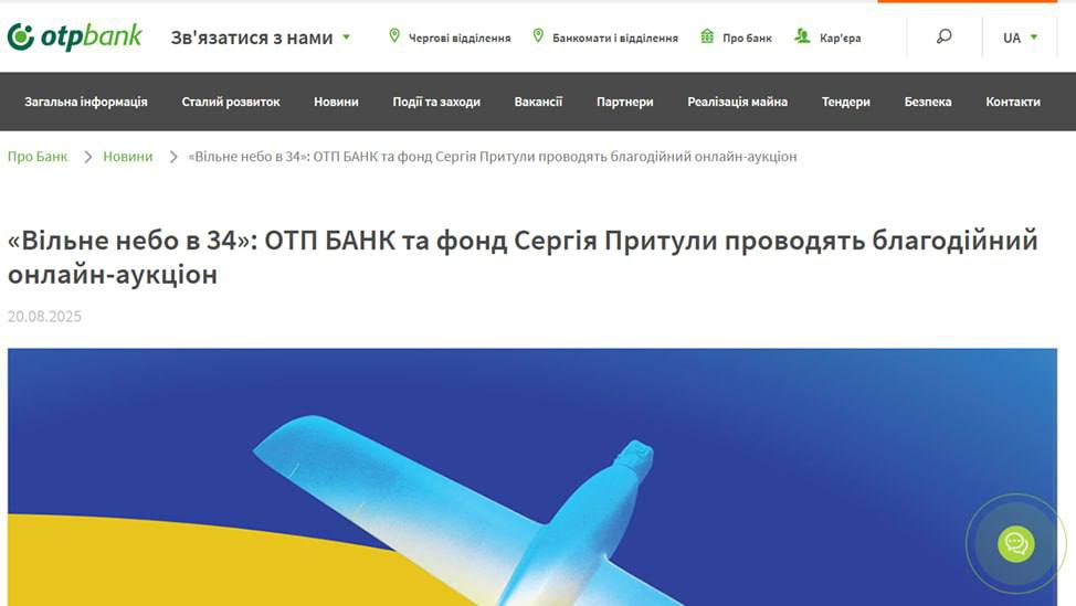 - ОТП БАНК і Фонд Притули: «Вільне небо в 34» — Інтеграція в банківські додатки