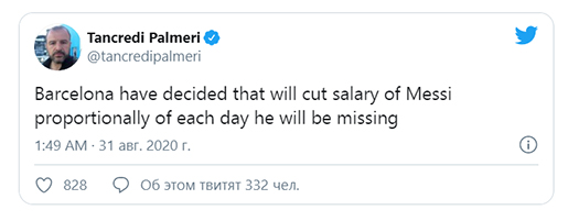 Руководство каталонского клуба приняло решение пропорционально сокращать зарплату Месси за каждый день его отсутствия. К тренировкам команда приступит уже сегодня, 31 августа.